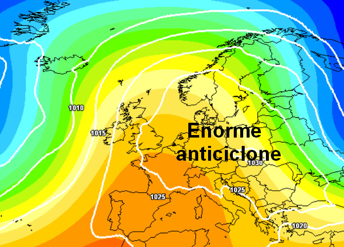 La mappa si commenta da sola: stabilità assoluta sull’Italia e gran parte del Continente con mitezza, inquinamento, nebbie nelle pianure durante la notte ed una totale assenza di precipitazioni.