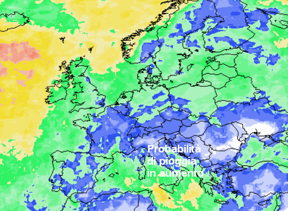 Probabilità di pioggia in aumento sulla nostra Penisola, stante il cedimento progressivo dell’alta pressione sul Continente, mentre il contesto termico seguiterà ad essere molto mite. Interessante notare come i modelli diano una maggiore probabilità di peggioramento e di pioggia al centro e al sud rispetto al nord.