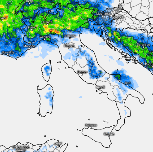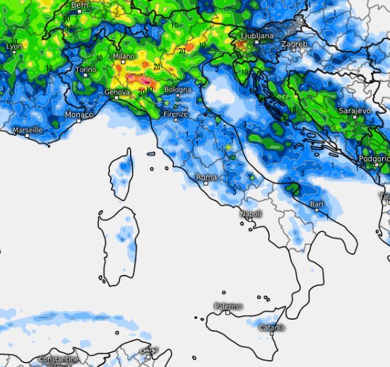 I fenomeni tenderanno in parte ad estendersi alle regioni centrali nella giornata di martedì 6 maggio, favorendo anche qui episodi temporaleschi e un certo calo calo delle temperature, che rientrerebbero nella media stagionale, salvo all’estremo sud. Qui i fenomeni attesi martedì 6 sempre secondo il modello ECMWF: