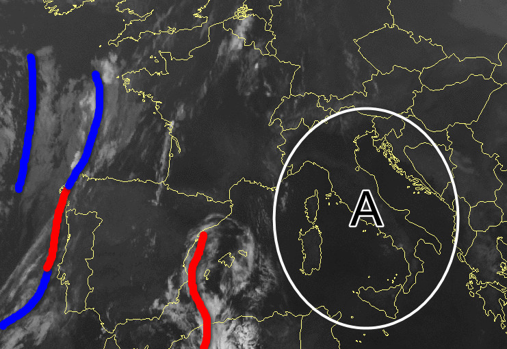 Nelle prossime 24-36 ore l’alta pressione raggiungerà il suo apice. Vi mostriamo l’ultima immagine satellitare che ritrae il tempo in Europa: