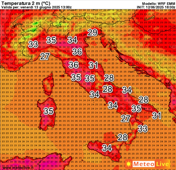 APICE del CALDO AFRICANO: le aree più ROVENTI venerdi 13 e sabato 14