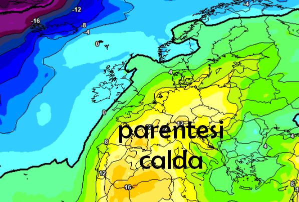 Anche termicamente i valori risalirebbero di diversi gradi, con punte superiori alla media, come dimostra la mappa seguente a 1500m: