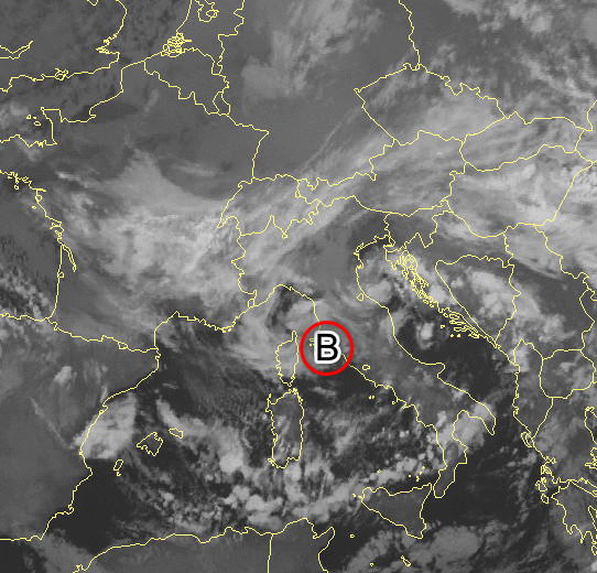 Il perno del maltempo è situato in prossimità dell’Isola d’Elba. Tutto attorno ruotano i sistemi nuvolosi che determinano tempo instabile sull’Italia con precipitazioni a prevalente carattere di rovescio. Ci sono anche delle schiarite, quindi non si può parlare di tempo perturbato, bensì instabile.