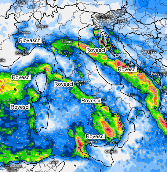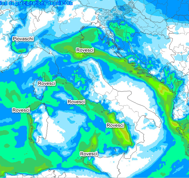 Infine, queste sono le precipitazioni attese in Italia nell’arco della giornata di martedi 10 dicembre: