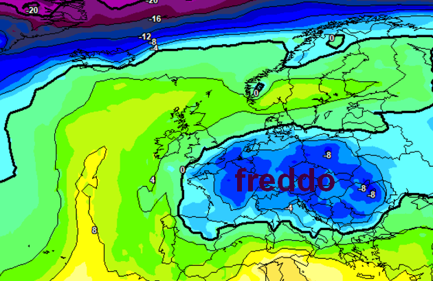 Ed ecco la situazione a livello termico a 1500m (stante la distanza temporale non prendete queste mappe alla lettera):