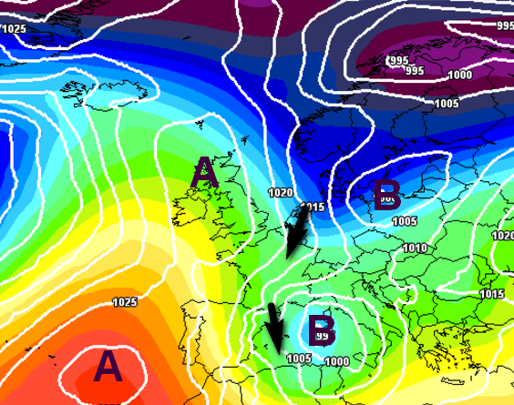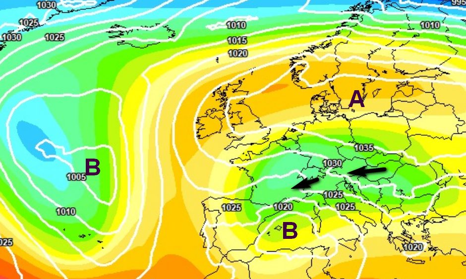 Invece il modello ECMWF e sotto traccia anche altri modelli, ipotizzano uno scenario molto diverso. In pratica l’anticiclone andrebbe a spingersi verso il nord del Continente e aria fredda di origine artica continentale finirebbe per muoversi con moto retrogrado verso il nostro Paese, favorendo una marcata flessione delle temperature e una possibile interazione con una depressione mediterranea, con conseguenze anche nevose.