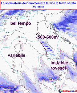 OGGI: al nord parziali addensamenti sul Triveneto e l’Emilia-Romagna ma senza conseguenze, più sole ad ovest, ma con locali situazioni nebbiose in pianura nella prima parte della mattinata. In giornata annuvolamenti in arrivo su Alpi e Liguria ma con fenomeni relegati ai settori alpini di confine e poi in mare aperto di fronte alla costa ligure. Al centro nuvolosità irregolare, con schiarite su Toscana e Lazio ed addensamenti più intensi su Marche ed Abruzzo, dove saranno possibili brevi rovesci, nevosi oltre i 500-600m. Al sud irregolarmente nuvoloso con ampie schiarite, a tratti addensamenti più intensi e soprattutto su nord Sicilia, Eolie, Calabria tirrenica, Molise e Puglia qualche rovescio o breve temporale. Temperature stazionarie.
