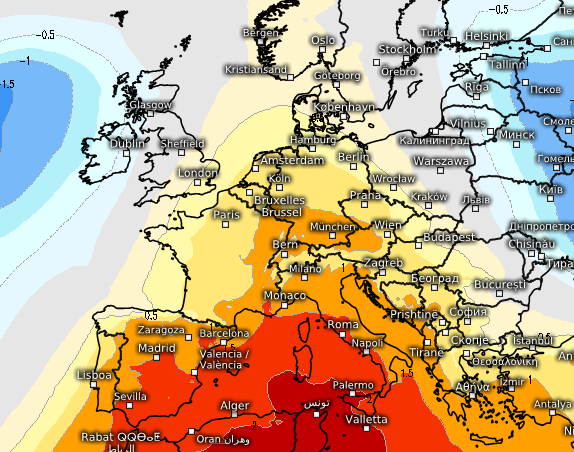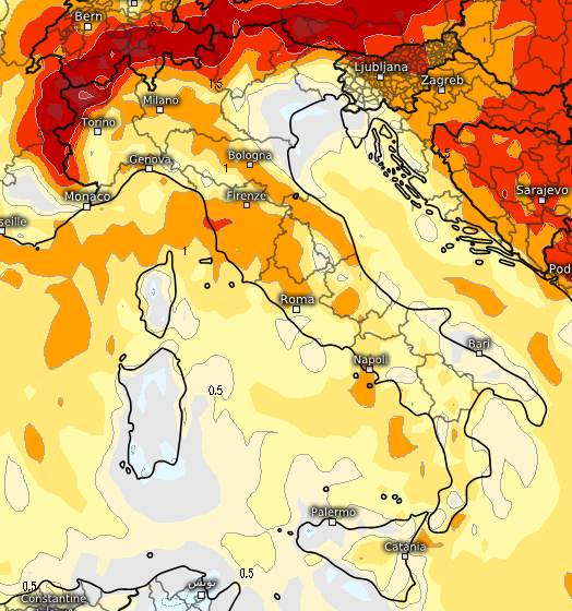 La spinta iniziale è quella che conosciamo da una vita sotto Natale. Una gigantesca bolla di aria mite e stabile invade il Mediterraneo con le sue temperature anomale. In ogni caso rispetto ai giorni scorsi, le anomalie sembrano lievemente più contenute, anche se a 1500m sulle Alpi occidentali si toccheranno comunque i 10°C e sulle zone pianeggianti e costiere libere da nebbia o nuvolosità i valori potranno aggirarsi tra i 12 e i 16° tra martedì 17 e mercoledì 18 dicembre.