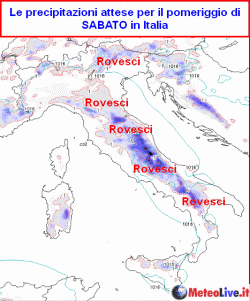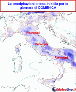 Al nord avremo ancora qualche rovescio sull’Appennino Ligure e la fascia prealpina ( specie centro-orientale) ma nell’arco della giornata le schiarite diverranno più ampie, specie in Val Padana, stante una rotazione delle correnti dai quadranti settentrionali ( arriverà insomma aria più secca).
