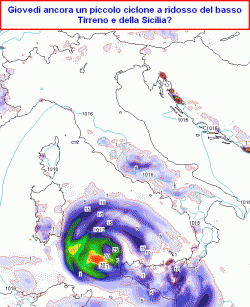 DOMANI: ciclone mediterraneo ancora attivo al largo della Sicilia con attivazione di instabilità anche sull’isola, Eolie, Egadi, Ustica, gran parte del sud e in parte sull’Abruzzo ed il basso Lazio con temporali sparsi, per il resto soleggiato e temperature ancora superiori alla media.