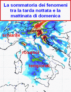 Dal pomeriggio primi fenomeni al nord-ovest, in estensione al Triveneto entro sera. Domenica ancora rovesci sul nord-est, temporali sulle centrali tirreniche, schiarite al nord-ovest ma ripeggiora entro sera, in attesa il sud. Lunedì nuovi rovesci al nord, inaffidabile al centro, peggiora al sud, specie sul Tirreno. Martedì ancora instabile sull'insieme del Paese. Solo da mercoledì tendenza a graduale miglioramento, ma da confermare.