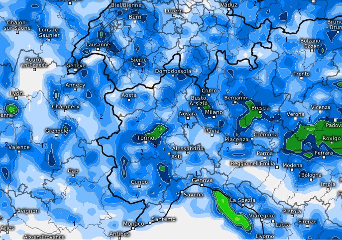 Cosa vede il modello per il pomeriggio sulle zone citate: ecco una possibile distribuzione delle precipitazioni, ma dovete tener conto che con i temporali i modelli faticano ad inquadrare bene come si sviluppano i focolai e soprattutto non riescono a cogliere l’area dove potrebbe formarsi una supercella, perché questa sfugge alla circolazione generale dei venti. Ecco comunque la distribuzione dei fenomeni al nord-ovest tra le 15 e le 17: