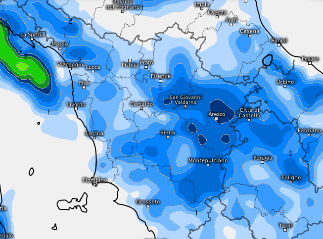 E infine le zone interne di parte del centro, quelle maggiormente coinvolte sembrerebbero quelle di Toscana, Umbria e Marche interne (Arezzo San Giovanni Valdarno tra le più colpite):
