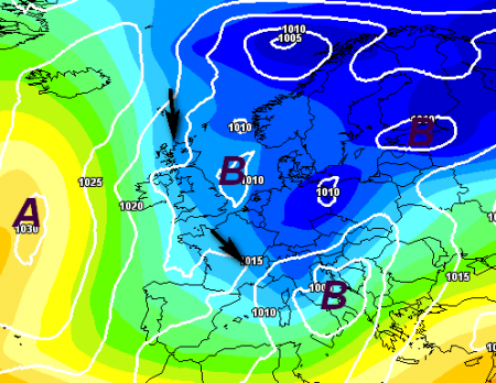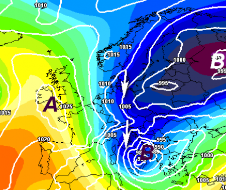 Guardate che anomalia pressoria si scorge nel fine settimana. Eppure gli effetti di questo affondo invernale saranno molto diversi sull’Italia: il nord rimarrà sottovento e la neve cadrà solo sui settori di confine (i soliti: alta val d’Ossola, alta Valtellina, vallate altoatesine).