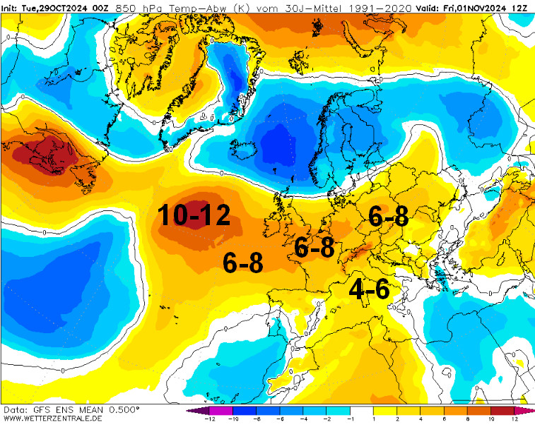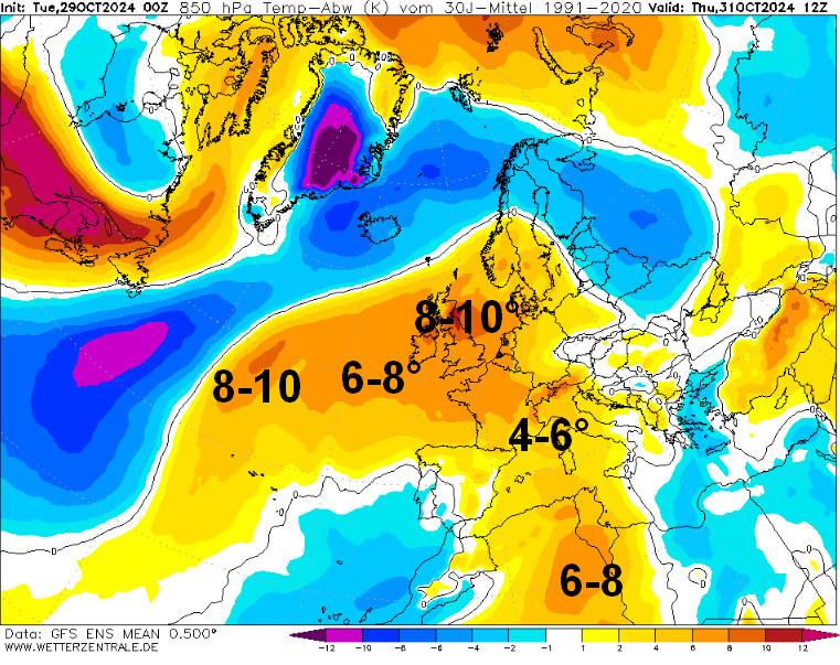 Aria davvero CALDA sarà presente sul nostro Continente nei prossimi giorni. In questa sede vi presentiamo le anomalie termiche previste a 1500 metri tra giovedi 31 ottobre e venerdi 1 novembre.