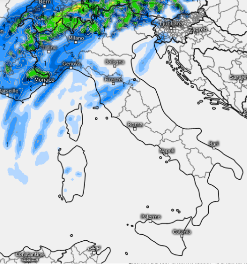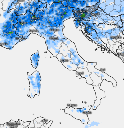 Le conseguenze anche sul piano precipitativo dunque non mancheranno a partire da nord, la mappa di sotto si riferisce a domenica 9 ma lunedì 10 i fenomeni potranno colpire soprattutto il centro: