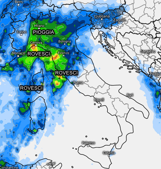Iniziamo con le piogge previste in Italia nella giornata di giovedi 30 gennaio:
