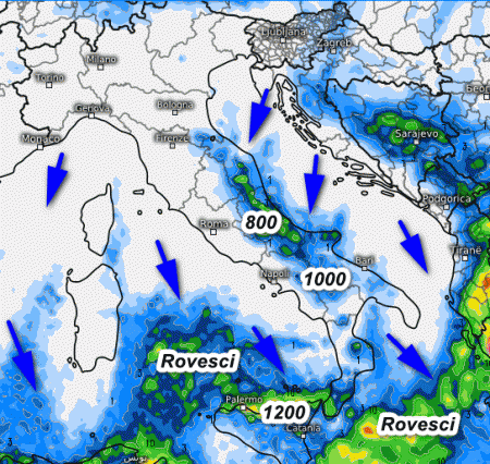 Andiamo però con ordine. Questa è la sommatoria delle precipitazioni attese in Italia fino alle ore 7 di domani mattina, sabato 16 dicembre:
