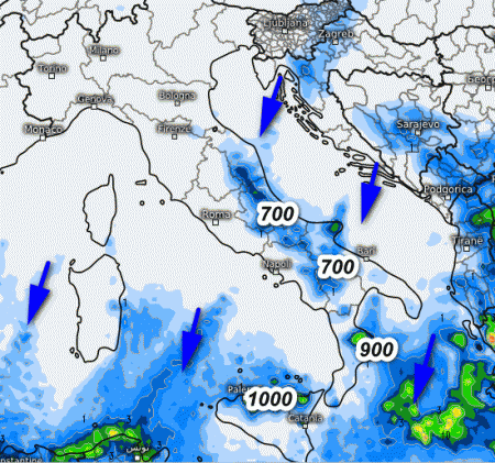 Correnti da nord sull’Italia e condizioni di instabilità sul medio-basso Adriatico e al meridione. Possibili rovesci e qualche temporale in Sicilia. Quota neve in calo fino a 800-1000 metri sull’Appennino centro-meridionale, 1200 metri sul nord della Sicilia. Venti forti e mari in burrasca. Sul resto d’Italia soleggiato, limpido e clima relativamente freddo.