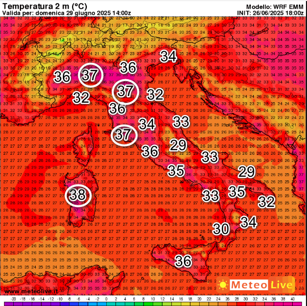 CALDO AFRICANO: 37-38° su queste regioni domenica 29 e lunedi 30