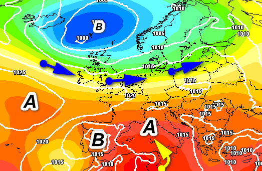 Alta pressione totale al centro e al sud. Il nord resterà invece lambito dal flusso atlantico e presenterà annuvolamenti con qualche temporale limitatamente ai settori alpini, con basso rischio di sconfinamenti in pianura.