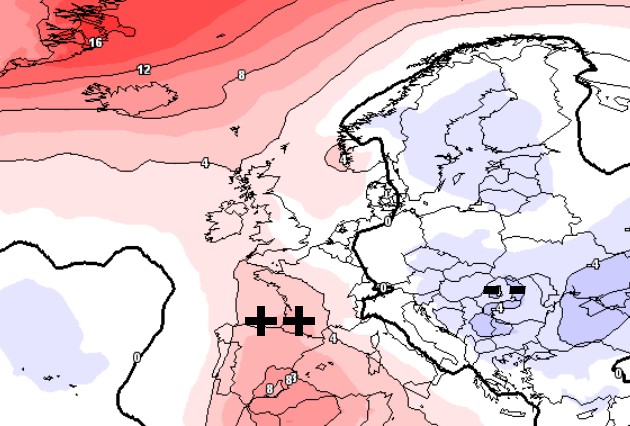 Solo sulle Isole Maggiori, davvero ai margini tra le due masse d’aria ma con un passo sulla “riga” della massa d’aria calda, i valori si manterranno leggermente superiori alle medie del periodo.