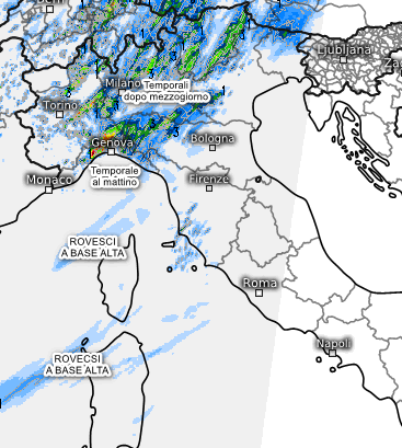 In mattinata i versanti padani liguri centro-occidentali vedranno un temporale orografico di natura mobile, ovvero con accumuli non eccessivi. Rovesci interesseranno anche il Trentino, il Veneto orientale e il Friuli. Dopo mezzogiorno inizierà a spegnersi il suddetto temporale orografico, mentre dovrebbero innescarsi temporali a macchia di leopardo su gran parte della Valpadana centrale ed orientale con fenomeni anche intensi. Gli eventuali rovesci che interesseranno la Sardegna e il Tirreno saranno a base alta e non produrranno accumuli degni di nota. Sul resto d’Italia soleggiato e molto caldo specie all’estremo sud.