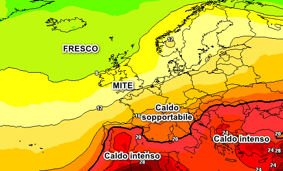 Per darvi un’idea più precisa di ciò che potrebbe attenderci, analizziamo insieme la mappa delle temperature a 1500 metri previste in Europa nelle ore centrali di venerdì 18 luglio.