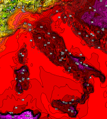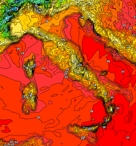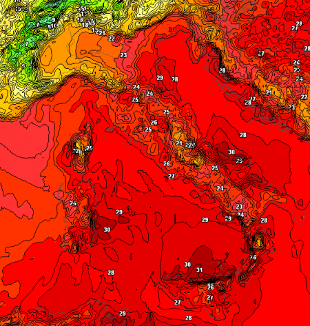 Dopo i 42°C raggiunti a Pistoia in Toscana, i 40°C di Nizza Monferrato in Piemonte e i 39°C dell’Emilia-Romagna, di colpo lunedì 28 su molte zone del nord potrebbero non superarsi i 20-22°C di massima, dopo minime anche prossime ai 27°C, le minime di martedì scenderanno nettamente sotto i 20°C.
