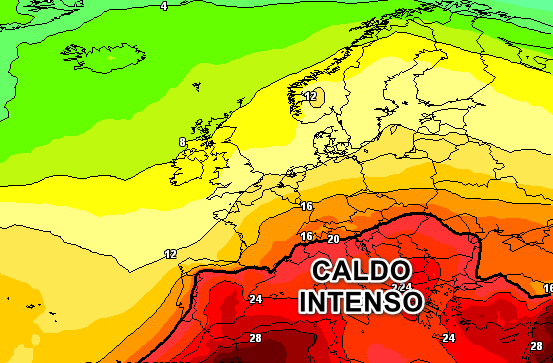 Per avere un’idea più chiara di ciò che ci aspetta, è illuminante osservare le temperature attese a 1500 metri nelle ore centrali di lunedì 21 luglio.
