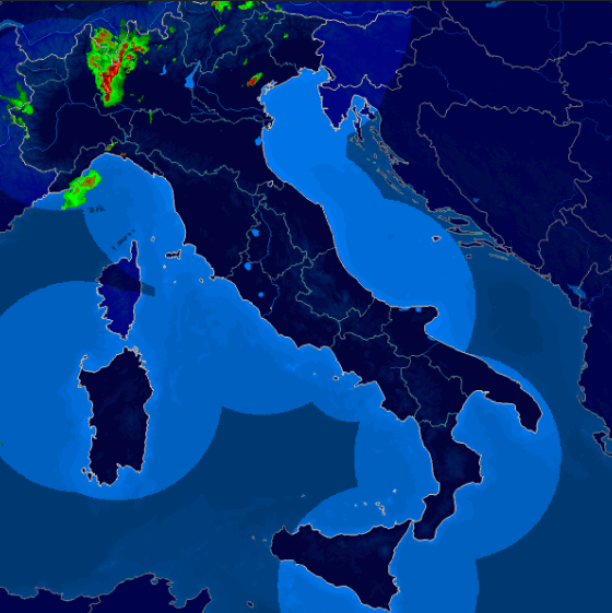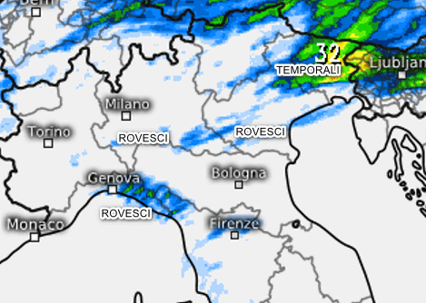 Vi mostriamo l’ultimo scatto del radar delle ore 7.30 di lunedì che mostra le piogge in atto sul nostro Paese: