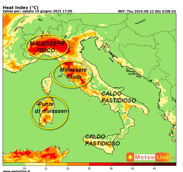 Fine settimana con FORTE DISAGIO FISICO per il caldo sulla nostra Penisola. La giornata peggiore sembra essere sabato.