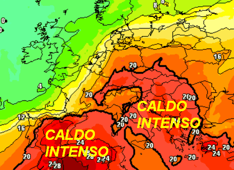 Buona parte d’Italia presenterà isoterme alla medesima quota attorno a 20°, il che testimonierà un’ondata di caldo abbastanza intensa, anche se non estrema come quella avutasi nella prima decade di agosto.