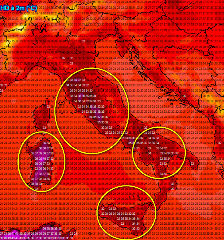 Buttiamo subito l’occhio alla Sardegna, dove nelle aree interne il termometro potrebbe toccare i 38°. 37° saranno possibili nelle aree interne del Lazio e sulla Lucania, mentre i 36° saranno papabili nelle aree interne della Sicilia, sulla Campania e nelle pianure interne tosco-laziali.