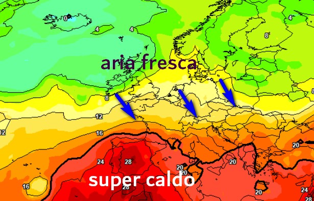 Cosa potrebbe accadere attorno al 12 agosto? Secondo alcuni modelli, intorno al 12 agosto potrebbe arrivare aria più fresca da nord-ovest, causando temporali e un moderato calo delle temperature, specie al Nord.