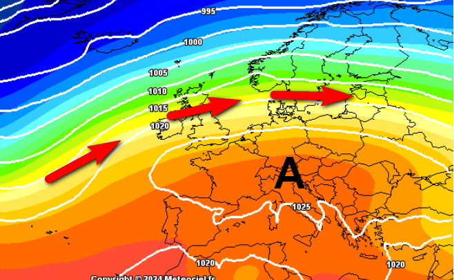 Quanto durerà questa situazione? Dalle mappe oggi disponibili non molto; lentamente, il flusso atlantico tenderà ad abbassarsi nuovamente di latitudine interessando successivamente anche l’Italia ad iniziare dalle regioni settentrionali.