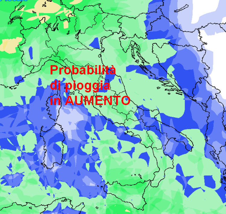 Probabilità di pioggia in aumento, in un primo tempo al nord, poi anche al centro e al sud, ma in un contesto termico sempre mite.