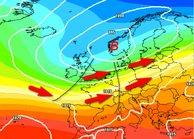 Dicevamo di un cambio netto degli assetti circolatori sul nostro Continente. Sparirà infatti l’alta pressione scandinava ed al suo posto si posizionerà una vasta depressione che orienterà le correnti tra ovest e sud-ovest sulla nostra Penisola e l’Europa centro-settentrionale. Si tratterà di aria mite ed umida che determinerà precipitazioni sparse segnatamente al nord, sul Tirreno e nelle aree interne dell’Italia centrale.