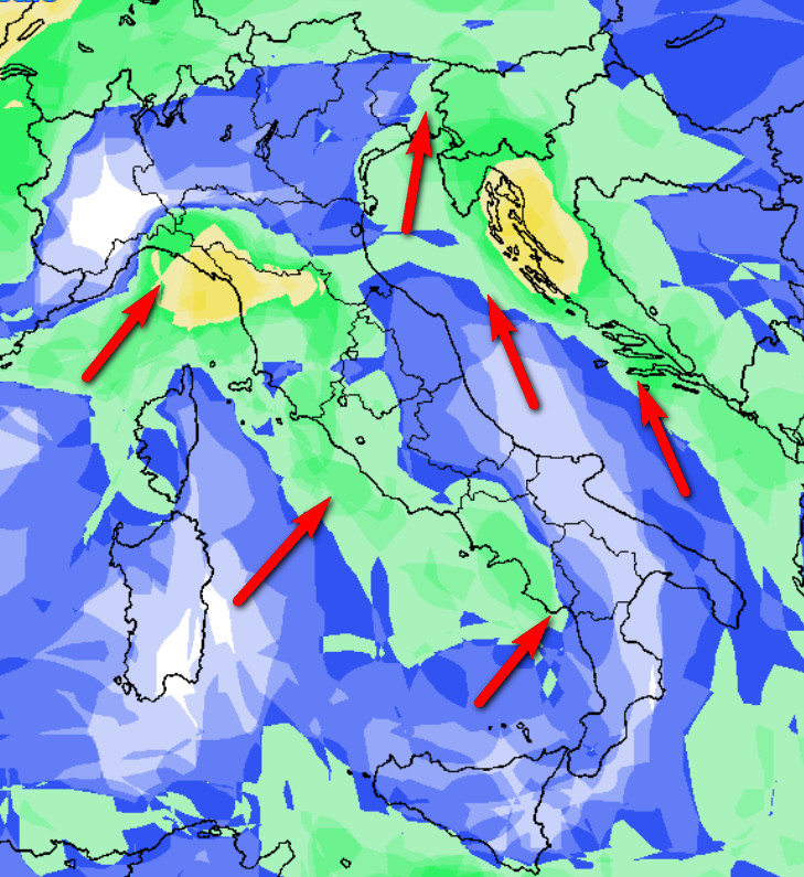 Probabilità di pioggia in aumento su parte del settentrione, ma soprattutto lungo il versante occidentale della Penisola, con probabilità maggiore tra la Liguria di Levante e l’alta Toscana. Sul resto d’Italia prevarrà ancora una probabilità di pioggia bassa accompagnata anche da temperature piuttosto miti.