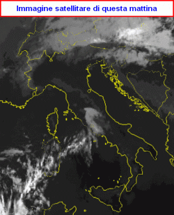 L’ultima immagine satellitare ripresa dallo spazio mostra un’Italia sgombra da nuvolosità significativa. Solo la Sardegna, il Lazio e il settore alpino centro-orientale sono interessate da nubi locali, non associate comunque a fenomeni.