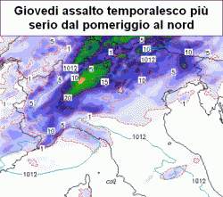 BOTTA TEMPORALESCA: giovedì un impulso temporalesco più intenso potrebbe colpire il nord, aprendo la crisi estiva anche al centro a partire dal Tirreno e dalla sera. Tra venerdì e sabato molti temporali sono attesi per il modello americano al centro-sud e sul nord-est.