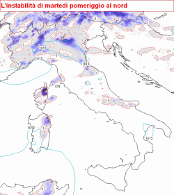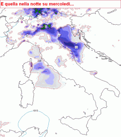 SITUAZIONE: dietro il fronte transitato nella giornata di domenica, aria umida, fresca ed instabile insiste ancora sulle regioni di nord-est. Il nostro Paese si trova peraltro inserito in un flusso di correnti occidentali debolmente perturbate. Martedì un nuovo impulso temporalesco raggiungerà il settentrione.
