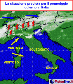 Come si comporterà il tempo nella giornata odierna in Italia? Partendo dal settentrione, avremo una parziale intensificazione dell’attività temporalesca su Alpi e Prealpi, segnatamente nelle ore pomeridiane e serali, proprio a causa del flusso occidentale instabile sopracitato.