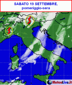 Cosa succederà in Italia nella giornata odierna, sabato 19 settembre? La cartina è incentrata tra il tardo pomeriggio e la serata, quando il sopracitato nucleo instabile avrà raggiunto le Alpi. Qualche temporale sarà possibile tra il Piemonte, la Lombardia e i settori alpini centro-orientali.
