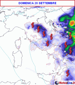 Il cambiamento vero e proprio interverrà sull’Italia nella giornata di domenica 20 settembre. Ecco i temporali originati dall’aria fresca in ingresso sull’Italia.