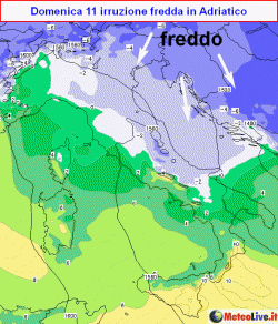 Nuvolaglia sino a venerdì, poi sbalzo termico notevole in sole 24-36 ore: sabato molto mite, domenica con freddo e rovesci anche temporaleschi nel pomeriggio su nord-est ed Emilia-Romagna con neve in collina, in movimento verso medio e basso Adriatico con fiocchi sempre a quote basse. In seguito nuovamente più mite sino a mercoledì 14.