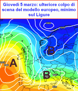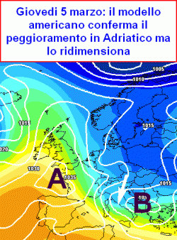 DIVERGENZE MODELLISTICHE: il modello europeo, pur ridimensionandone leggermente la portata e lo schema barico, crede ancora nella persistenza dell’aria fredda sul territorio anche nei giorni successivi con possibile rientro di ulteriori impulsi da est, mentre il modello americano stamane vede una notevole accelerazione della corrente a getto, la spanciata dell’anticiclone nel Mediterraneo e una facile stabilizzazione con tempo primaverile da lunedì 9 in poi. Una situazione che andrà riletta alla luce dei prossimi aggiornamenti e che dunque non si presenta chiara e definita nè in un senso nè nell’altro.