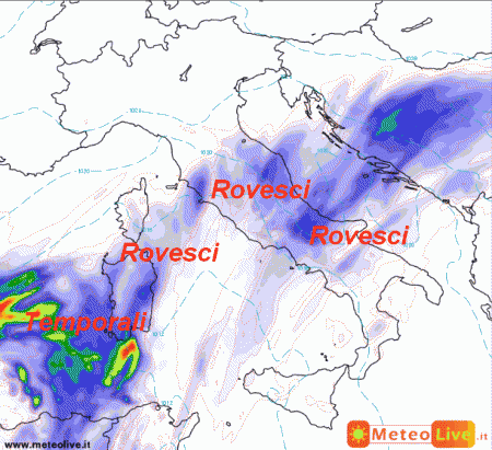 Le regioni settentrionali saranno ai margini ed avranno fenomeni molto piu sporadici ed irregolari, alternati a belle fasi soleggiate.
