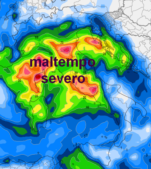 Come vedete Lazio, Sardegna, Emilia-Romagna, l’alta Toscana, la Liguria, potrebbero essere colpite in pieno ma i fenomeni interesseranno un po’ tutte le regioni se davvero andrà a collocarsi sul medio Tirreno come previsto dal modello GFS.