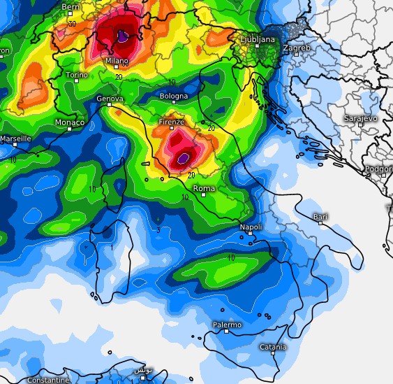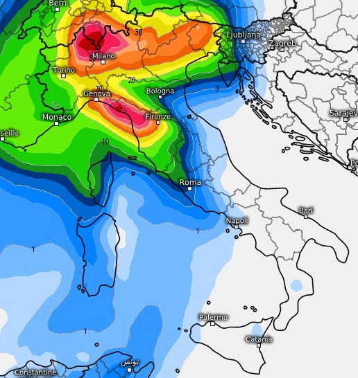 Si tra giovedì 28 e domenica 31 l’insistenza di queste correnti umide da sud ovest al nord porterà piogge molto abbondanti a ridosso della fascia alpina e prealpina, una situazione da monitorare attentamente.
